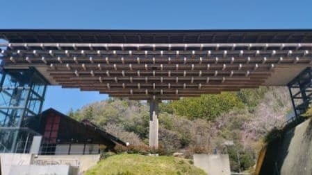 2010年に竣工した橋のようなミュージアム。雲の上のホテルと温泉をつなぐ橋と隈研吾氏のミュージアムとしてつくられた。